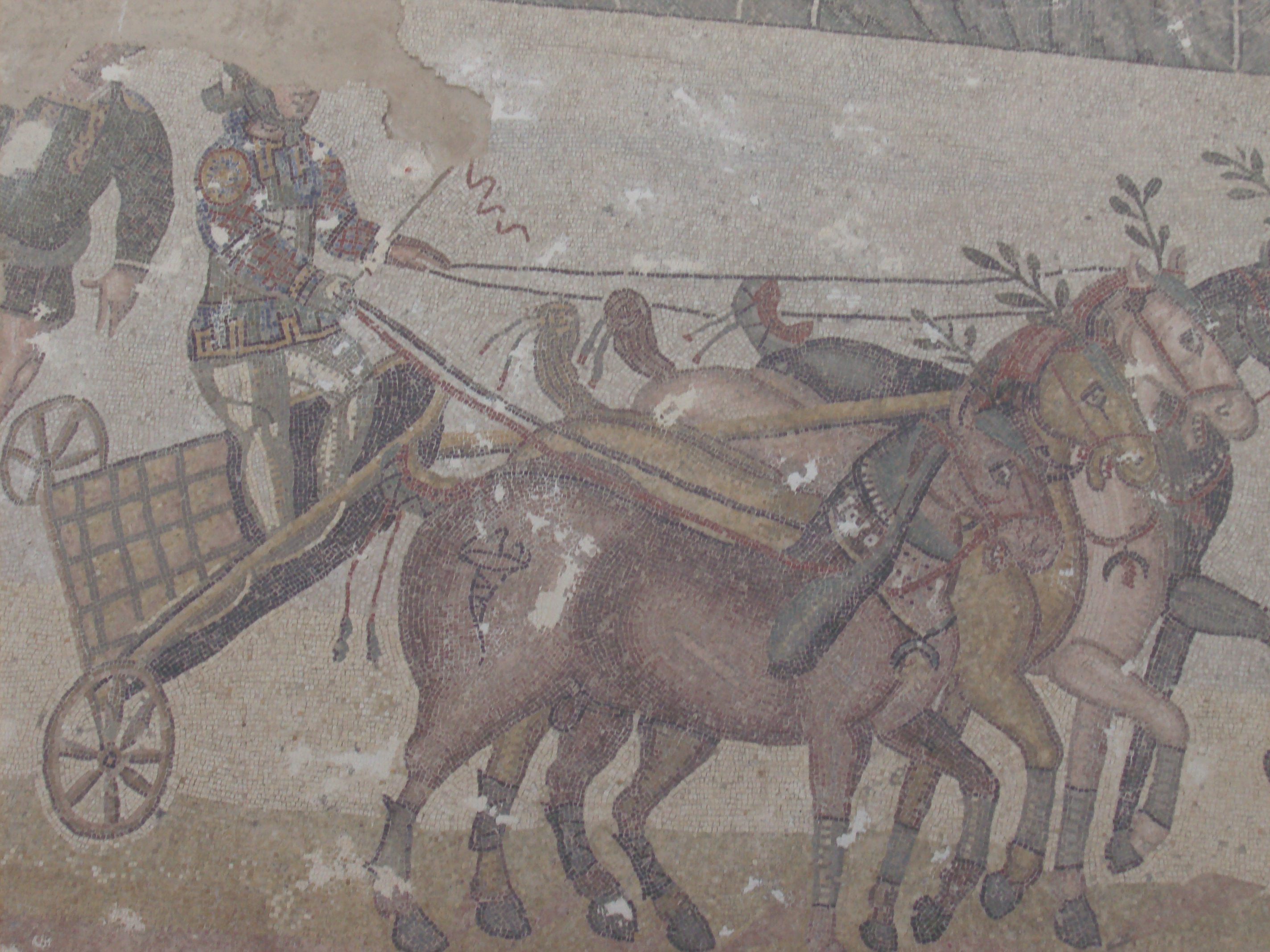 - Mosaico representando una cuádriga romana