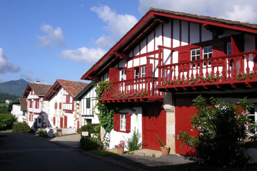 - Calle en Sare, con las casas típicas del País Vasco francés